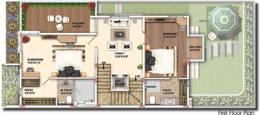 - First Floor Vitrified Flooring in Family and Laminated Wooden Flooring in Bedrooms.